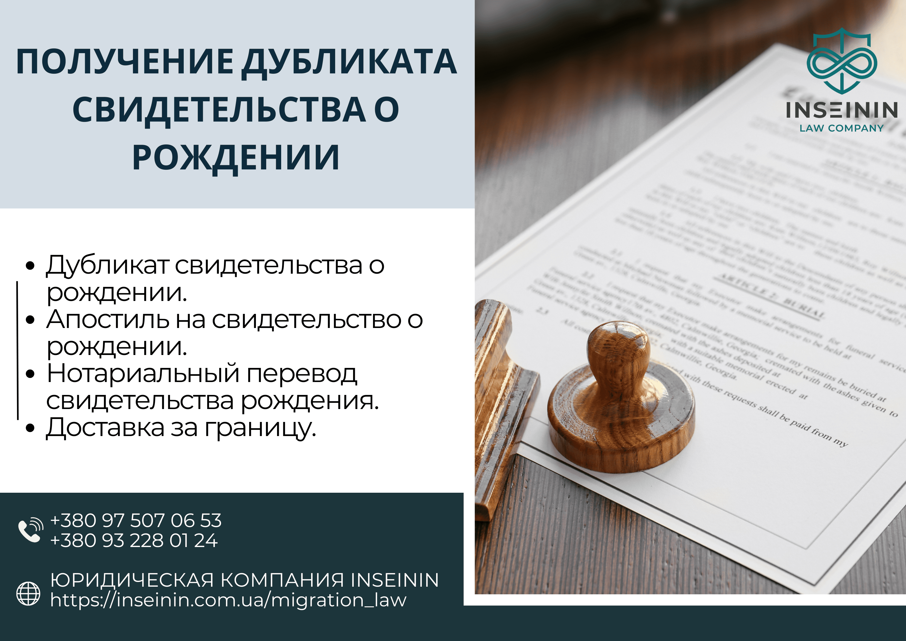 📞 Если у вас возникли вопросы или вам нужна юридическая поддержка по вопросам получения Дубликата свидетельства о рождении его апостилировании или переводе обращайтесь к адвокатам Юридической компании INSEININ для получения консультации или сопровождения по номерам: +380 97 507 06 53 или +380 93 228 01 24.