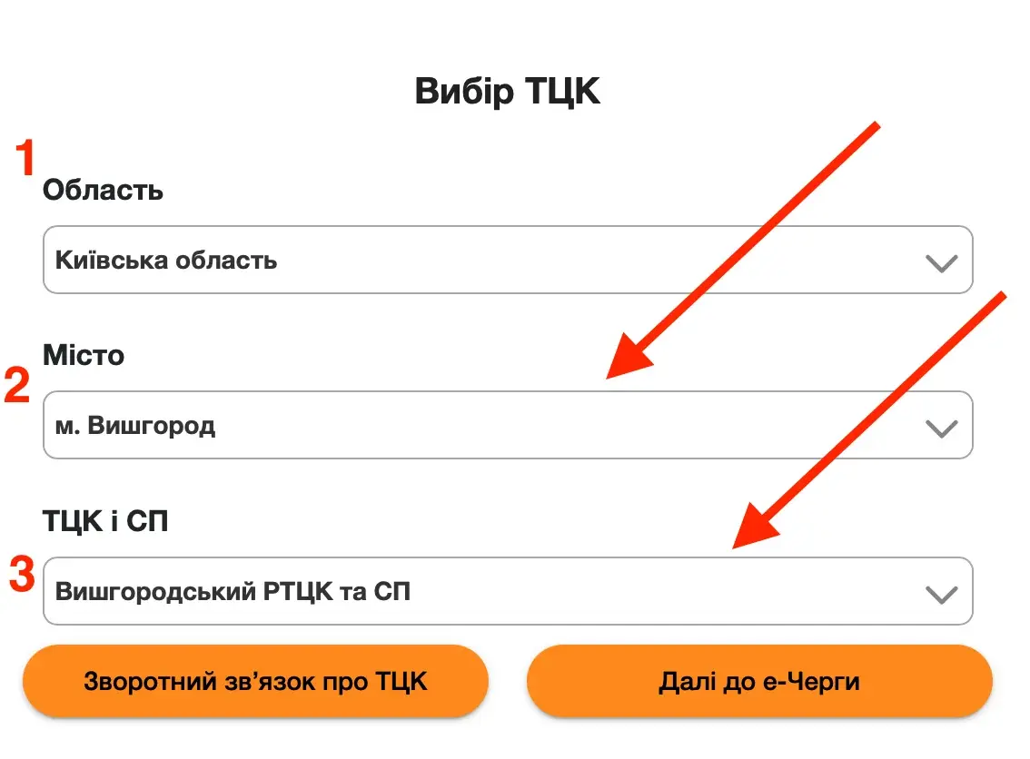 Шаг 2: Выбор ТЦК, где состоите на военном учете, к которому хотите осуществить запись Онлайн