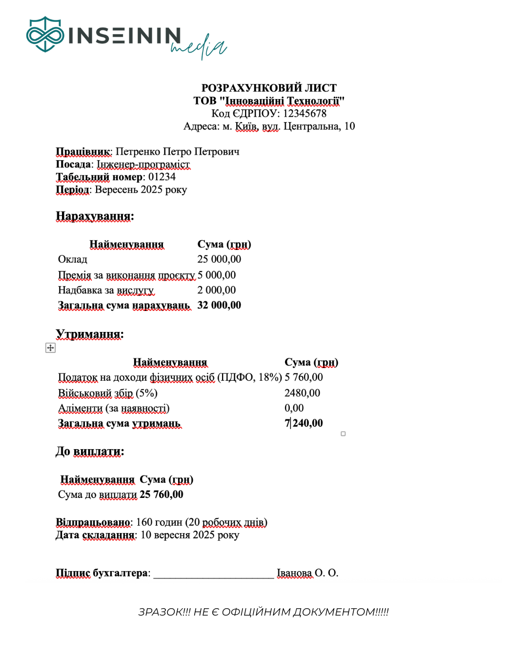 - Зберігайте розрахункові листи (хоча б 3 роки) для можливих перевірок чи судових спорів.