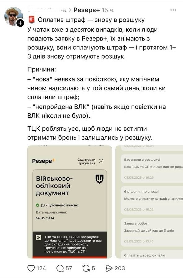 Після сплати штрафу в Резерв + військовозобовʼязані отримують нову повістку, про це повідомляють користувачі додатку після того, як стала доступною функція оплати штрафу через застосунок. Як пояснюють юристи юридичної компанії INSEININ у своїй статті, це не є порушенням, а радше нормою, відповідаючи на питання чи може бути надіслана нова повістка після сплати штрафу: