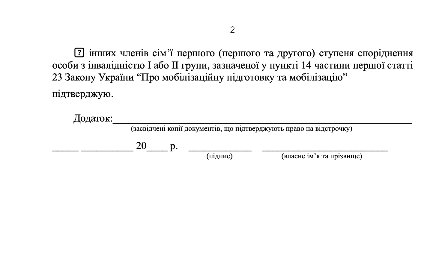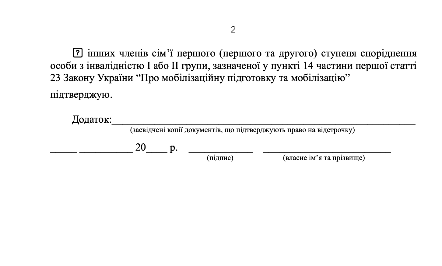 Заява повинна містити такі обов’язкові відомості про військовозобов’язаного:
