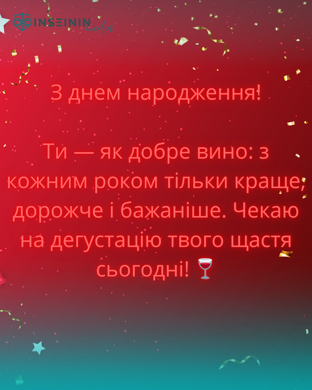 Ось ми команда INSEININ Media склали для вас авторський список ТОП-50 привітань щирих та досліз з фото для привітання з Днем Народження у СМС, листівці, на застіллі або у будь який інший спосіб своїми словами так як би ви говорили від себе та з любовʼю — теплі, віддані, з українською душею і без жодного літературного жаргону! Передавай, додавай ім’я і даруй посмішку з фото! 🎉