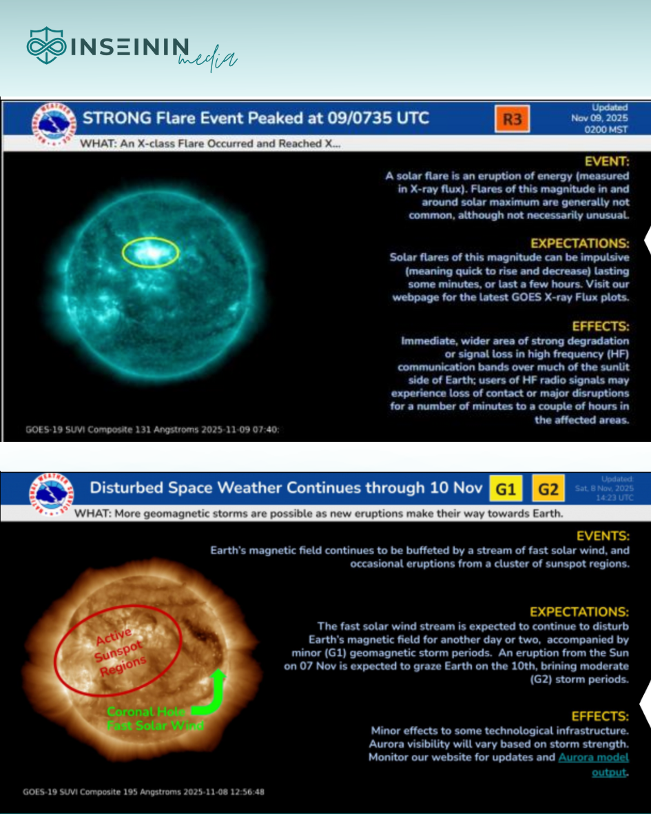 11-12 листопада (ВІВТОРОК-СЕРЕДА) ⚡ G2 Watch (Kp=6, Moderate storm) Очікується помірна буря! Можливі стрибки тиску, мігрень, проблеми з GPS/зв'язком на високих широтах. Не панікуйте — це не "8 балів", а нормальна G2.