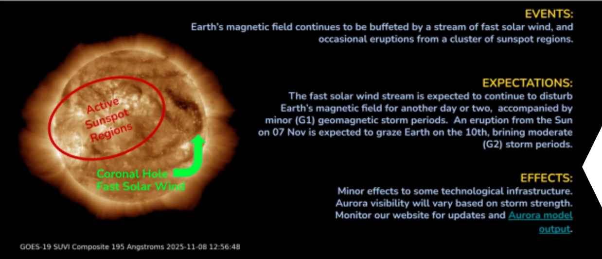 11 листопада (ВІВТОРОК) 🔥🔥 8 балів — ПІК ШТОРМУ! Найнебезпечніший день! Сонячна плазма врізається в магнітосферу на повній швидкості. 😵 Багато хто відчуватиме:
