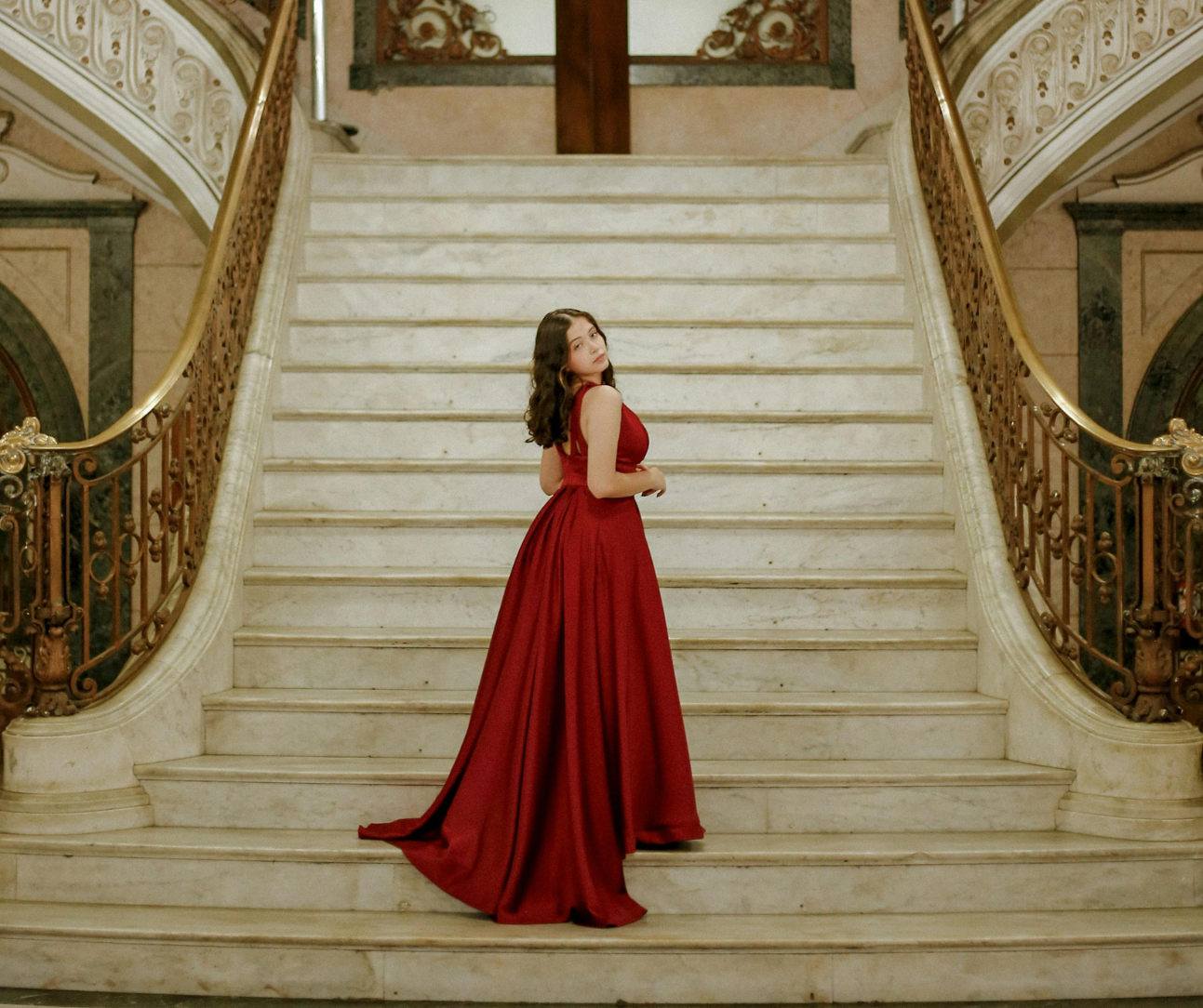 - Жінки: сукня рубінового кольору з шовку чи атласу, з золотими акцентами.
