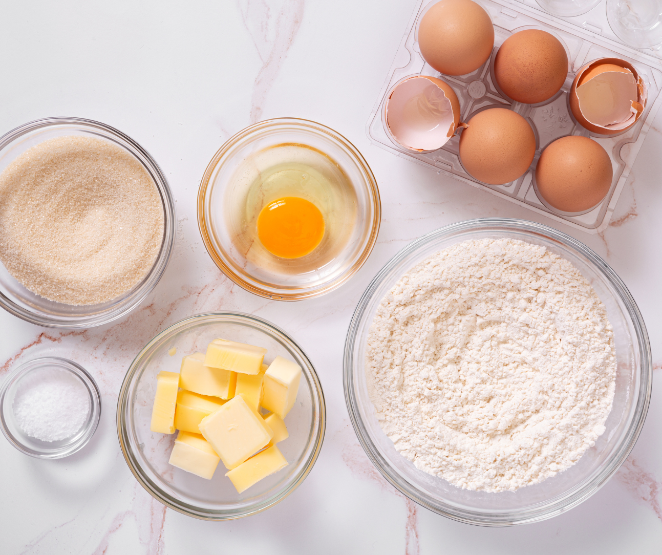 - 6 ст. л. борошна (якщо хочете зробити шоколадний бісквіт, то варто використовувати 3 ст. л борошна та 3 ст. л натурального какао порошку)
