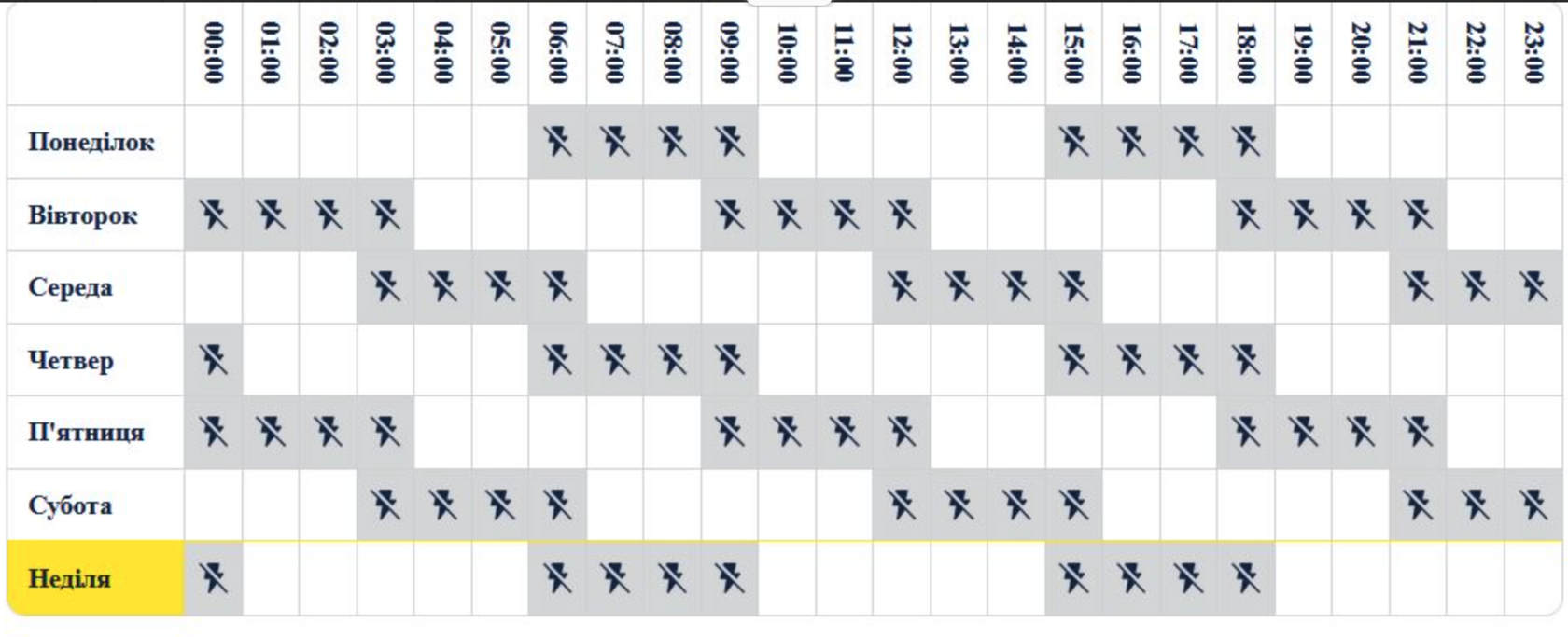 Нижче наведено графік відключення світла у Львівської області станом на листопад місяць 2025 року.