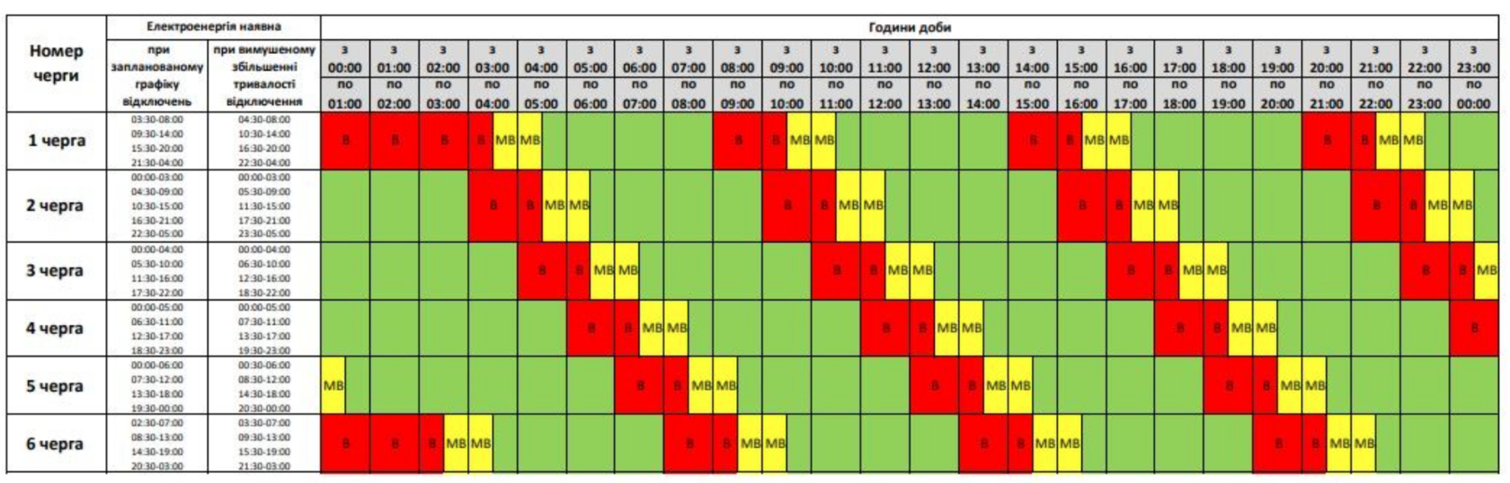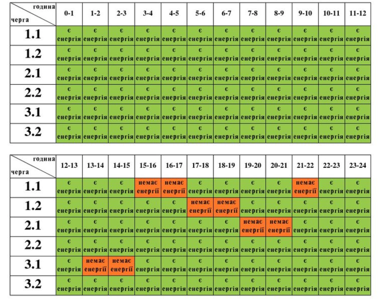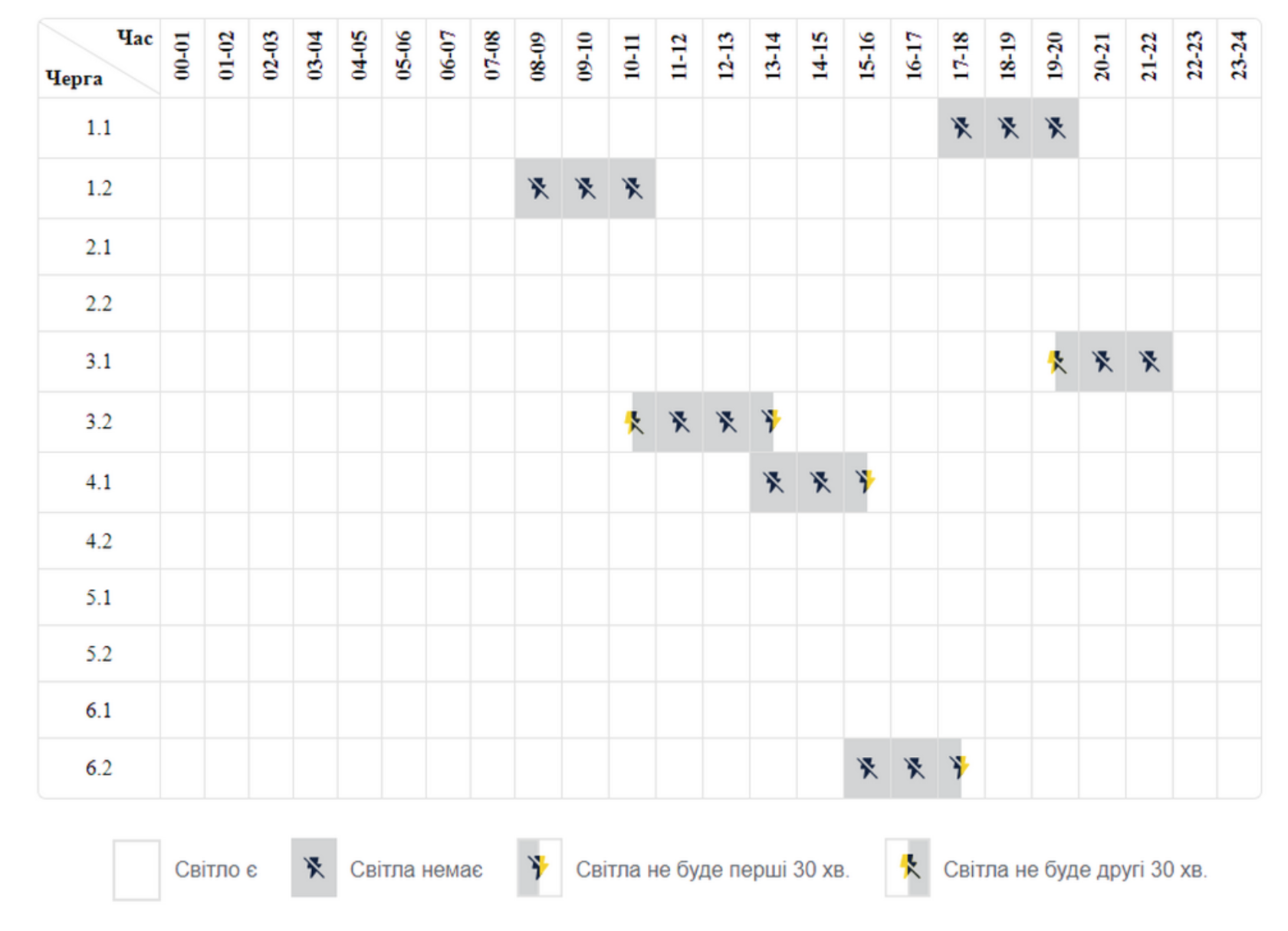 Звертаємо вашу увагу: Що графіки є динамічними, залежно від багатьох обставин, навантаження на мережу, відновлення ліній, погода у вашому регіоні та короткочасні перемикання. Тому оновлені дані дивіться на сайті Укренерго.