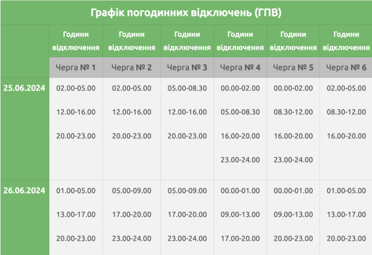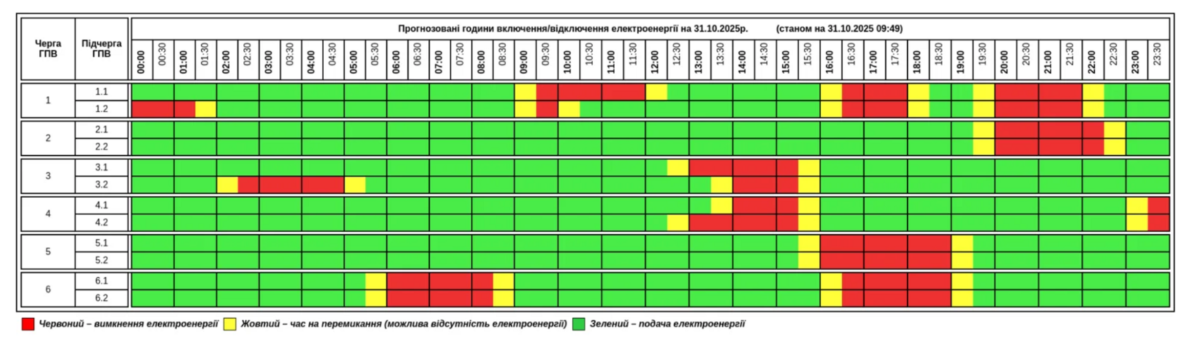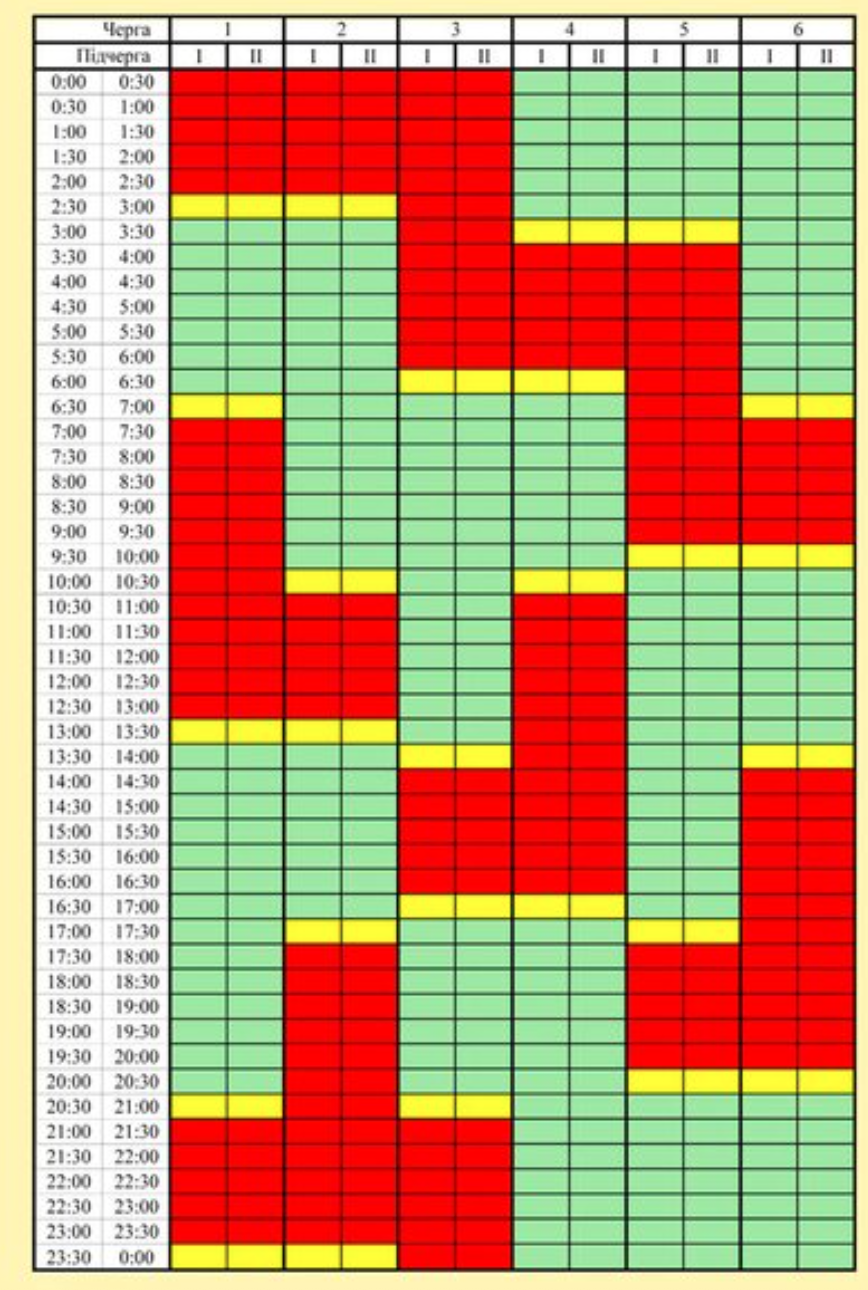 Звертаємо вашу увагу: Що графіки є динамічними, залежно від багатьох обставин, навантаження на мережу, відновлення ліній, погода у вашому регіоні та короткочасні перемикання. Тому оновлені дані дивіться на сайті Укренерго.