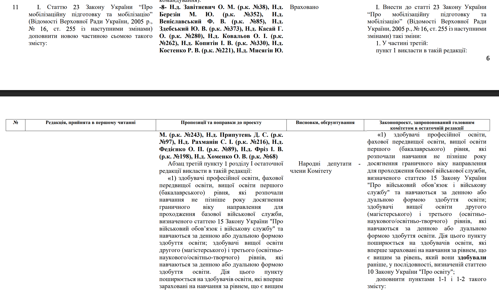 Реєстраційний законопроєкт № 13574 від 31.07.2025р. який може бути прийнято в цілому на позачерговому засіданні верховної ради у цю суботу 27 грудня 2025 року, передбачає внесення зміни до статті 23 Закону України "Про мобілізаційну підготовку та мобілізацію", а саме планується скасування відстрочки від призову на військову службу під час мобілізації для військовозобовʼязаних чоловіків які розпочали навчання після досягнення ними 25 річного віку.