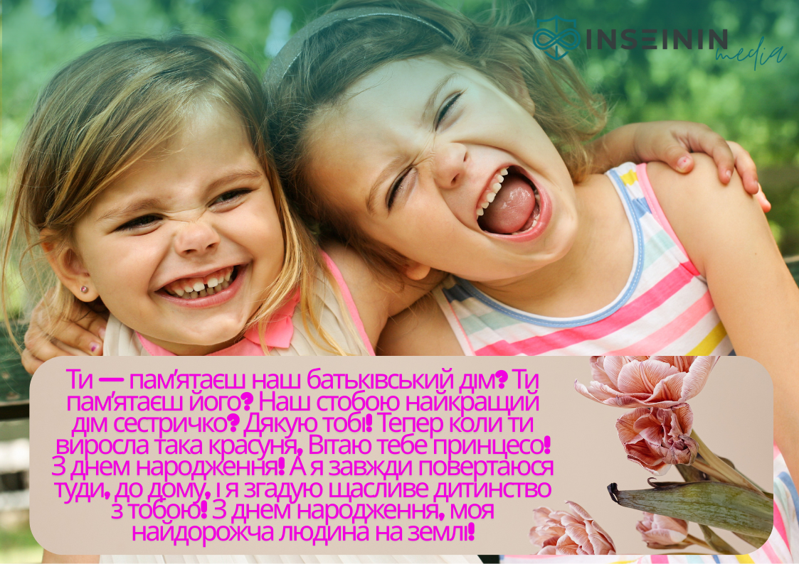 🏡 Ти — памʼятаєш наш батьківський дім? Ти памʼятаєш його? Наш стобою найкращий дім сестричко? Дякую тобі! Тепер коли ти виросла така красуня, Вітаю тебе принцесо! З днем народження! А я завжди повертаюся туди, до дому, і я згадую щасливе дитинство з тобою! З днем народження, моя найдорожча людина на землі!