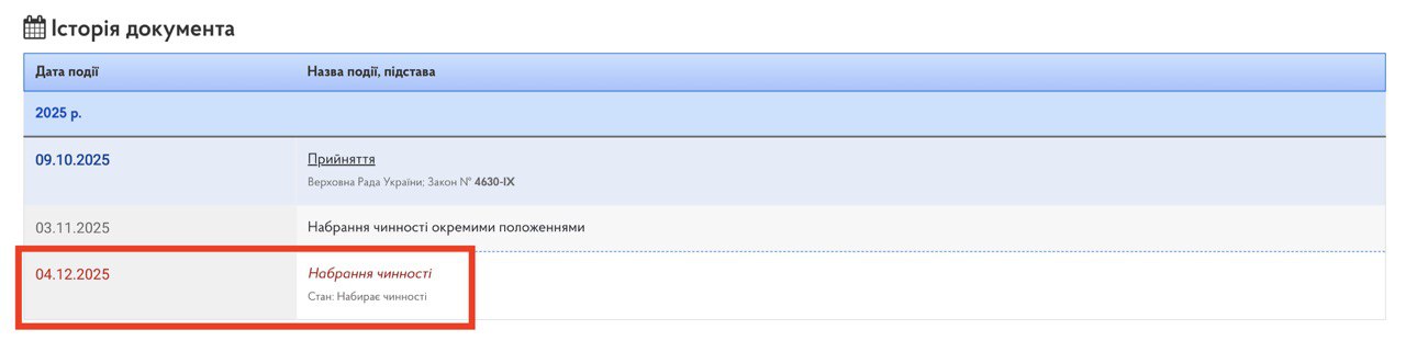 Законопроект № 13335 було прийнято Верховною радою України ще 09.10.2025 року. Опублікування в офіційному виданні "Голос України відбулося 03.11.2025 року. Відповідно до прикінцевих положень - "Цей Закон набирає чинності через один місяць з дня, наступного за днем його опублікування". Тому починаючи з 04.12.2025 року закон офіційно набирає законної сили та може використовуватись громадянами та юридичними особами у процедурі бронювання.
