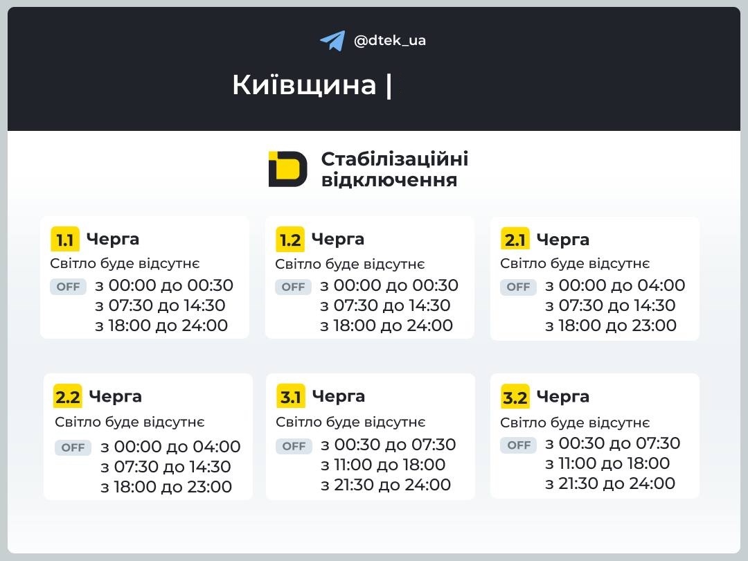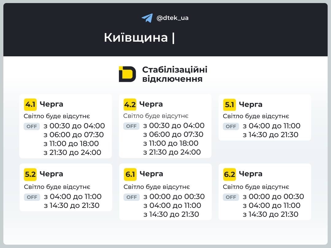 💡Київська область має нові графіки відключень світла з завтрашнього дня