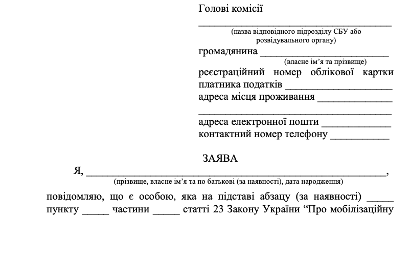 Військовозобов’язані СБУ чи розвідувальних органів подають заяву