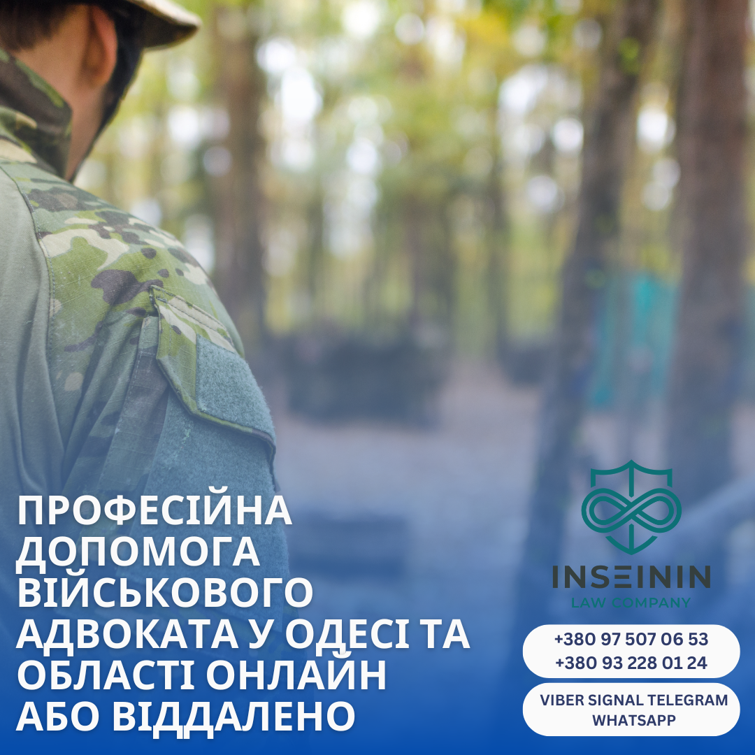 Дана стаття складена за досвідом та практичними кейсами військових адвокатів Юридичної компанії INSEININ, яка щоденно є провайдером юридичних послуг у військових справах по всій Україні, віддалено та онлайн включаючи Одесу, завдяки своєму професіоналізму, досвіду та клієнтоорієнтованості.