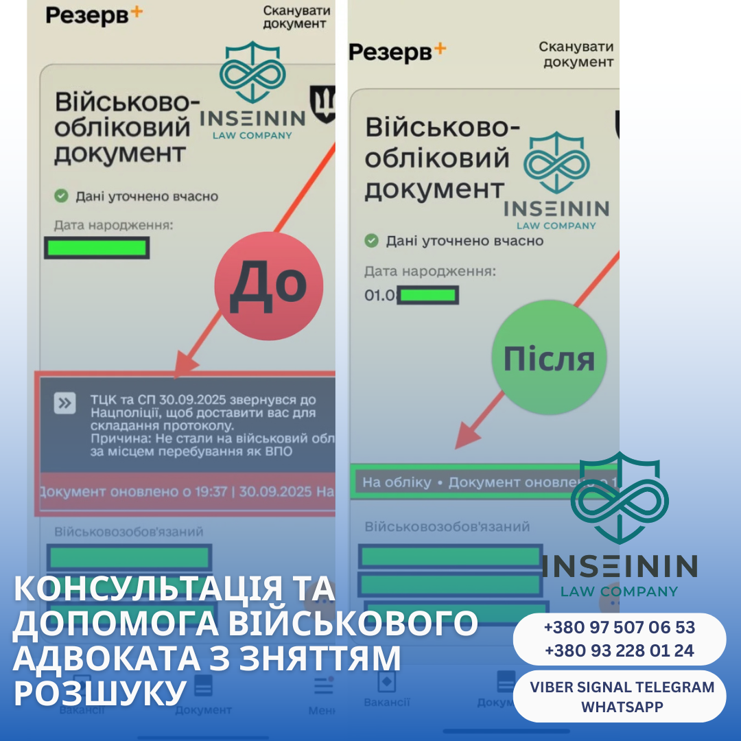 Однією з найгостріших проблем, з якою клієнти звертаються до Юридичної компанії «ІНСЕІНІН», залишається раптова поява статусу «У розшуку» або в застосунку Резерв+ це значиться як "ТЦК звернувся но Національної поліції, щоб примусово доставити вас до ТЦК за порушення правил військового обліку"
