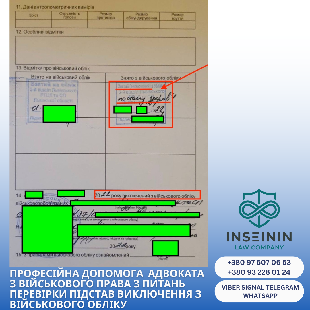 Юридична компанія INSEININ яка профільно займається військовим правом уже багато років підготувала розлогий матеріал про те, хто має право на виключення з обліку у 2026 році та як виглядає ця процедура згідно з нормами Закону України «Про військовий обов'язок і військову службу».
