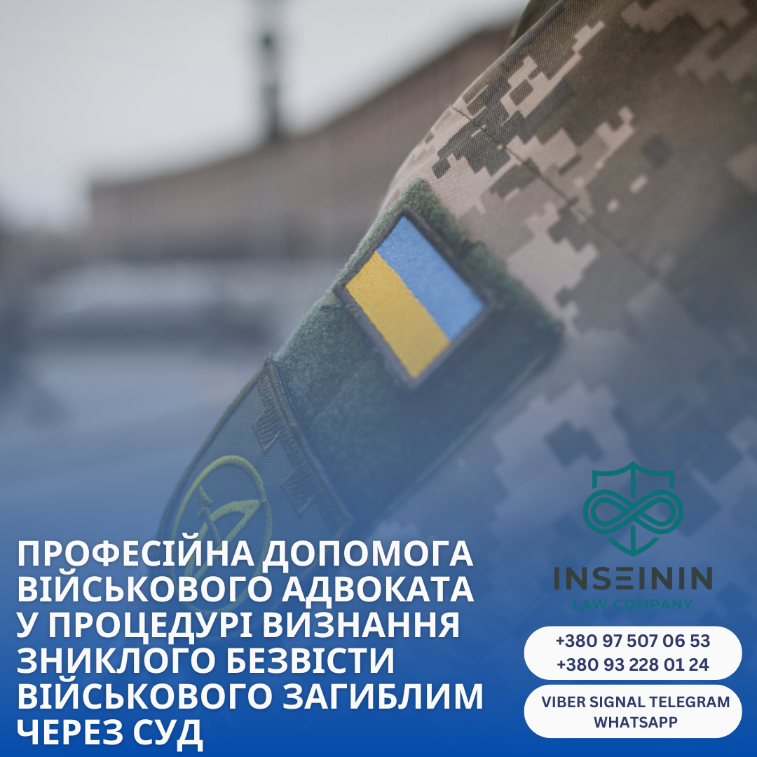 Визнання зниклого безвісти військового померлим – це емоційно та юридично складний процес, який вимагає ретельної підготовки документів і знання нюансів законодавства. Помилки можуть призвести до відмов чи затягування справи. Якщо ви стикнулися з такою ситуацією, не варто діяти самостійно. Наші військові адвокати Юридичної компанії INSEININ 0 97 507 06 53 мають великий досвід у супроводі подібних справ: від підготовки заяви до представництва в суді. Ми допоможемо зібрати докази, оформити документи та захистити ваші права, забезпечуючи швидке та ефективне вирішення.