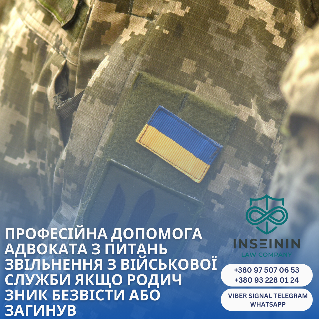 Увольнение с военной службы, если родственник пропал без вести или погиб: Советы и анализ от военных адвокатов INSEININ Юридическая компания INSEININ, которая специализируется на военном праве, социальной защите и сопровождении дел в сфере обороны, продолжает информировать граждан об актуальных вопросах в условиях военного положения. Сегодня мы рассмотрим одну из самых болезненных тем: увольнение с военной службы в случае пропажи без вести или гибели близкого родственника. Эта ситуация касается семей, понесших потери из-за российской агрессии. Наша статья базируется на действующем законодательстве Украины по состоянию на 2026 год, с учетом последних изменений и судебной практики. Мы стремимся предоставить полную картину, чтобы вы могли эффективно защищать свои права, избежать бюрократических ловушек и получить необходимую поддержку.