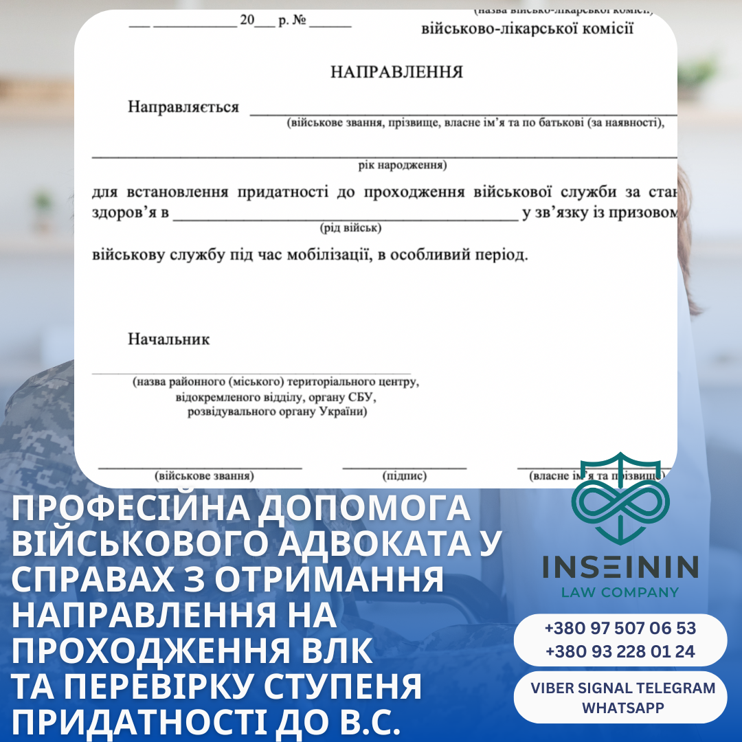 Получение Направления на Военно-врачебную комиссию (ВВК) является "входными воротами" для любого военнообязанного или военнослужащего, который нуждается в изменении/обновлении статуса ВВК (срок действия ВВК в период действия военного положения - 1 год), освобождении от воинского учета в ТЦК или со службы по состоянию здоровья, или пересечении границы, или переводе в тыловую часть. Без этого в реалиях 2026 года — ни одна комиссия вас не проведет, а диагнозы останутся лишь вашими бумагами на руках. Несмотря на активную цифровизацию армии и внедрение системы «Оберіг» с интеграцией с медицинскими системами "Хелси", человеческий фактор никуда не исчез. Командиры и ТЦК на местах часто блокируют процесс, мотивируя это "служебной нецелесообразностью". Юридическая компания «ИНСЕИНИН» подготовила исчерпывающую инструкцию, как пробить эту стену и получить законное направление на медицинское освидетельствование в 2026 году.